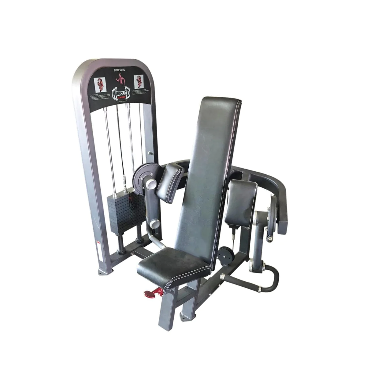 Bicep Curl Machine – Muscle D Fitness (MDC-1010) – The Muscle D Bicep Curl Machine was designed to isolate the biceps putting more emphasis on the inner head while removing the front delt for maximum contraction. Each arm moves independently of the other giving the trainee the option of alternating the movement or curling both handles at the same time. The one touch adjustable seat is simple to adjust and aligns the user with the handles according to their height and preference. The Muscle D bicep curl machine comes loaded with a 150 lb. weight stack that is positioned close to the user for quick weight changes. And the heavy 11-gauge rectangular steel tube frame and dense closed-cell foam padding offers a rock solid foundation for building the biceps and will perform flawlessly for years to come.