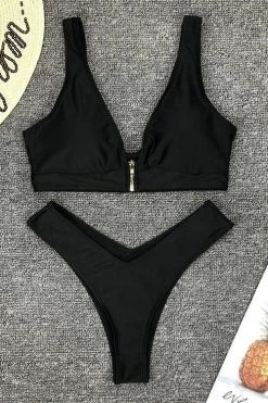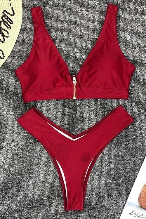 Miss Norst High Leg Zipper Front Deep V Bikini