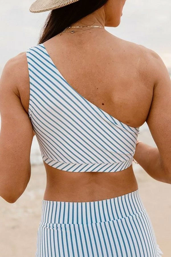 MySwimsuit Stripe One Shoulder High Waist Bikini Set
