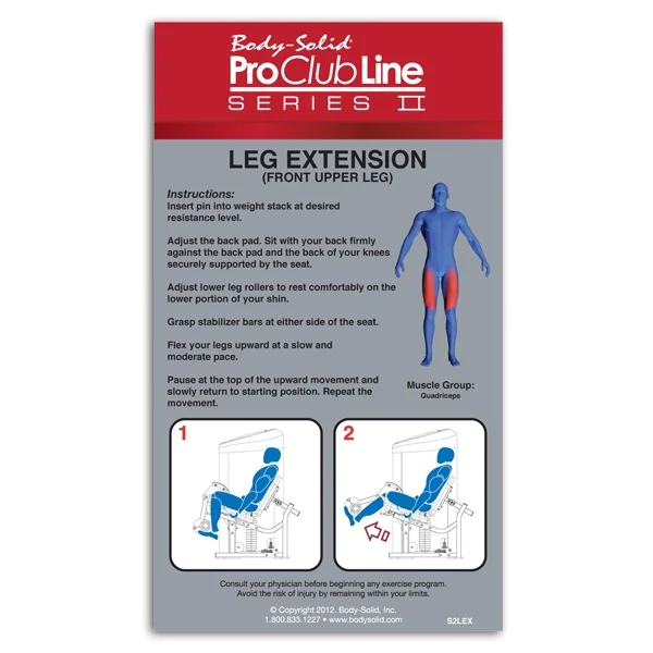 Body-Solid Pro Clubline Series II Leg Extension Machine – Designed to provide an intense workout while eliminating strain, the Pro Club Line Series II pieces are hard to beat. Easy and convenient step in entry makes getting started a breeze. Thick, comfortable DuraFirm pads reduce fatigue and discomfort allowing you keep working out. Rock solid support and stability is delivered via heavy-gauge steel frames with all-4-side welded construction. The fully shrouded weight stack offers a safe and attractive machine that is sure to be a hit in any commercial gym facility.