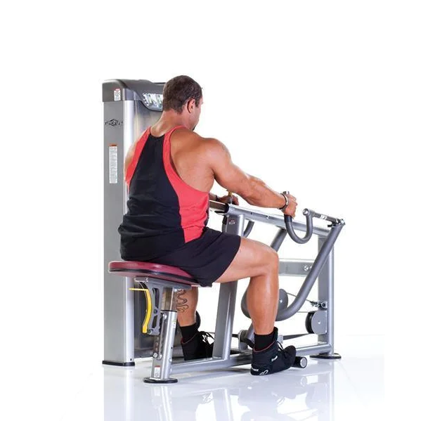 Proformance Plus PPS-207 Seated Row – The Proformance Plus Seated Row by TuffStuff is a top of the line selectorized rowing machine that even diehard free weight proponents will appreciate for the many advantages it offers in working the lats and mid-back. For many exercises, theres no denying the balancing and independent movement path of free weights makes them superior to machines for working the involved muscles through a complete range of motion. Rows are one of the few exceptions where a well-designed machine trumps its barbell and dumbbell counterparts. Anyone who has ever done barbell rows knows what a scary exercise they can be. To row properly, you must bend at the waist at about a 45° angle while holding a loaded barbell suspended at arms length and maintaining a flat back. You then must hold this precarious position throughout your set by maintaining an enormous amount of hamstring and lower back tension. Many trainees are able to row well in excess of 200 pounds with their large and powerful lat muscles, making the stabilizing task of the lower back and hamstrings even more difficult. For most, the risk/reward proposition of rowing forces them to abandon the movement altogether or adopt an alternative like dumbbell rows. While dumbbell rows lessen the potential for lower back injury because you can help support the weight of your torso with your free hand, they are still ripe for poor exercise form through heaving and twisting that leads to diminished gains.
