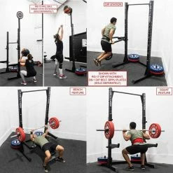 - HEAVY DUTY SQUAT RACK: The BD-57 is constructed from high quality 11-gauge steel for strength and durability throughout the 3″ x 3″ frame with a floor mount base support for added stability. This strong rack can also be bolted to the floor for even further stability in your home or garage gym, if required.
