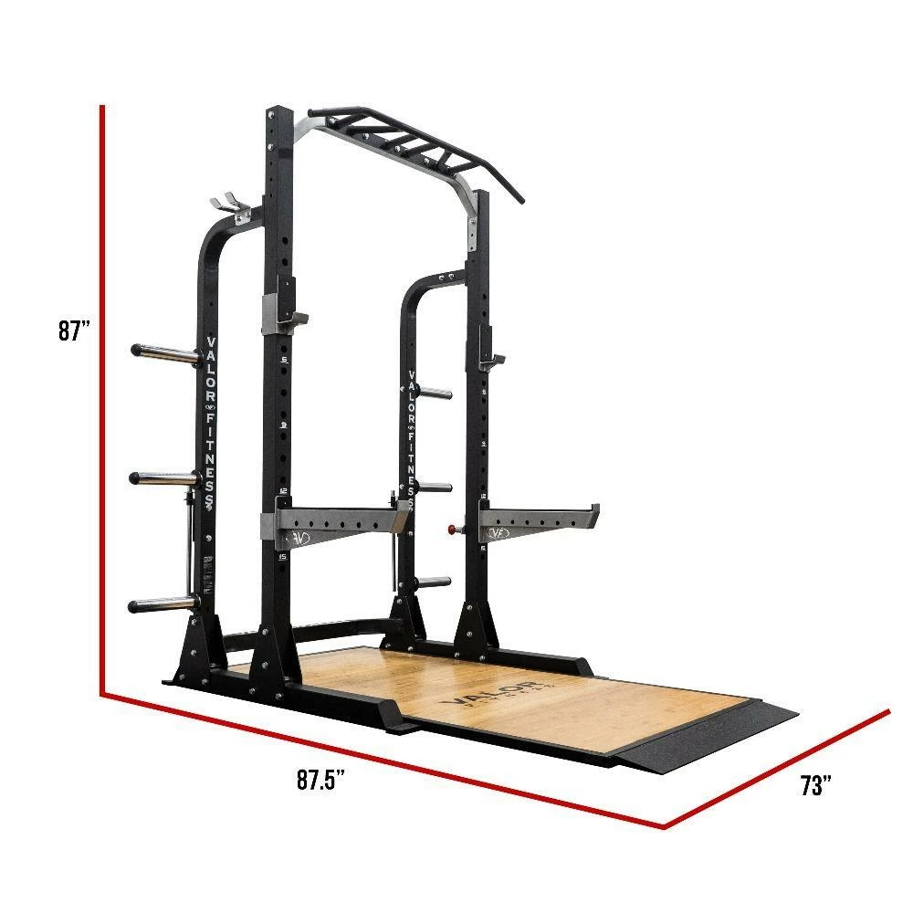 The Valor Fitness BD-58BPF, Half Rack with Weightlifting Platform turns the BD-58 Half Rack into the ultimate weightlifting station by adding the PTFM-58 Weightlifting Platform.