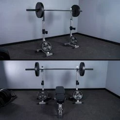- VERSATILE: Mainly functions as a squat stand but can easily accommodate a bench to perform bench presses.
