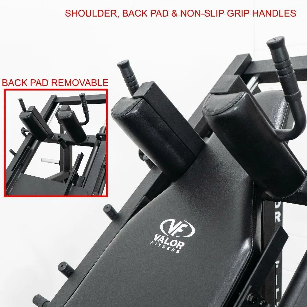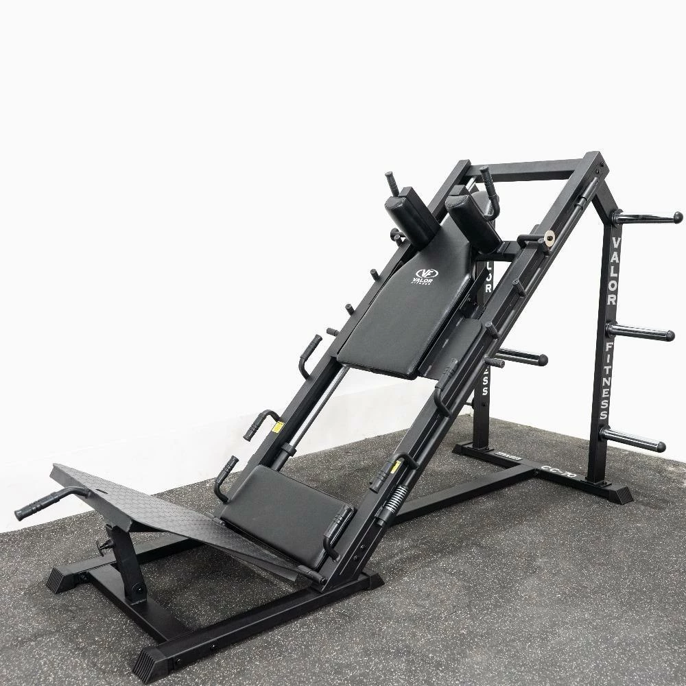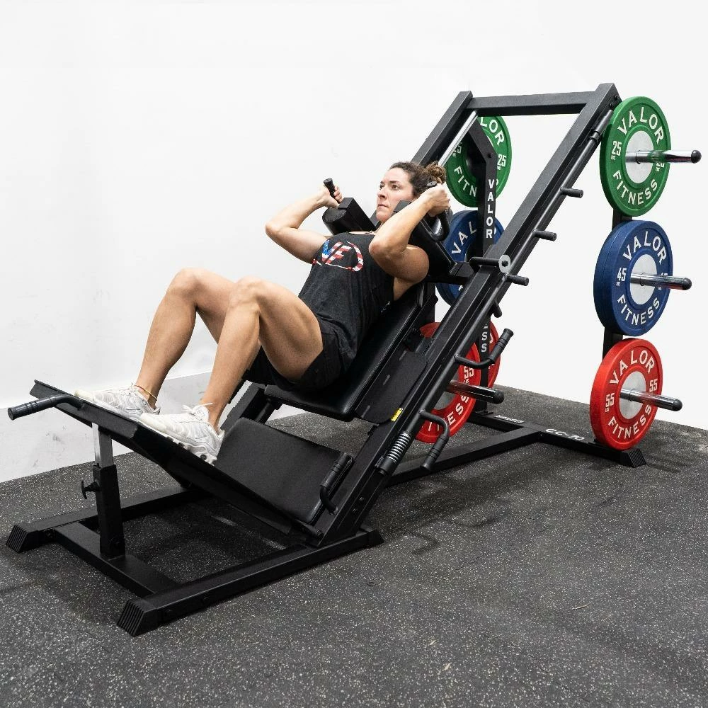 The Valor Fitness CC-70 Hack Squat & Leg Press Machine will bring the look and functionality of a commercial gym piece of training equipment to your own home gym. This Valor Fitness Retail Store exclusive will allow you to build explosive and powerful legs in more ways than one with a back pad that can be easily removed and set in place in both a hack squat and leg press function, making it one of the most versatile bodybuilding machines you’ll ever own.