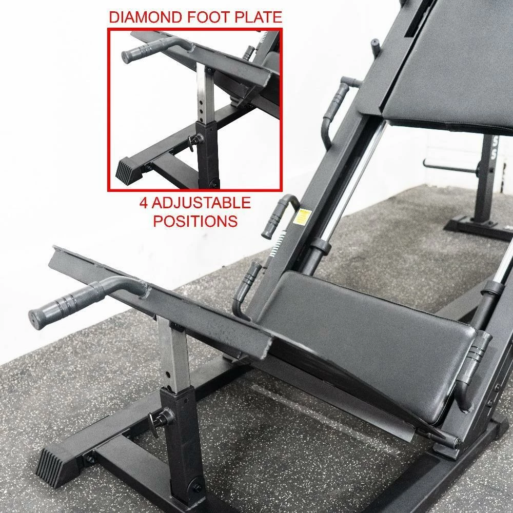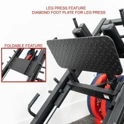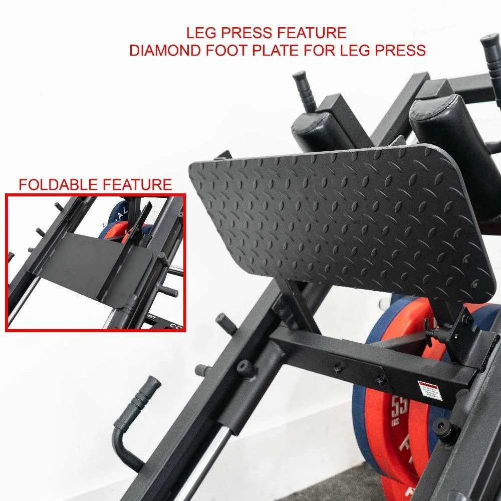 - MORE THAN A HACK SQUAT: The CC-70 has a unique back pad that can be removed and attached to the diamond steel foot plate/platform to transform this hack squat machine into a leg press machine to build your legs in a different way. A folding diamond steel foot plate uses a popper pin to access your firm footed platform to perform the leg press and get more out of your machine.