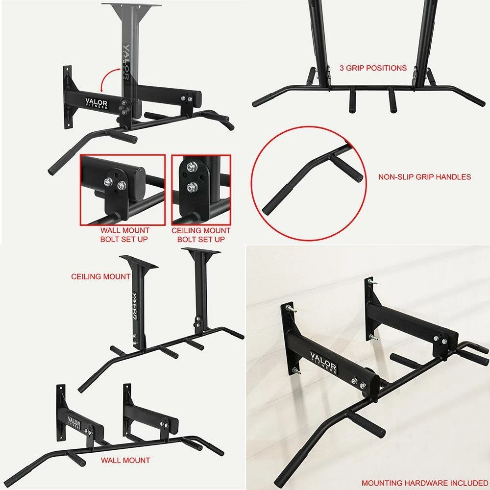 - 2 MOUNT POSITIONS: The unique construction of this pullup/chin up bar gives you the option to mount the bar to either the wall or ceiling to save space in your home gym. Mount to cement wall or ceiling to safely hold the max body weight.