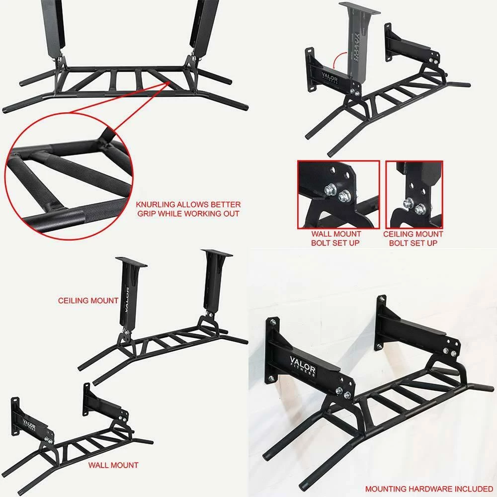What makes this pull up bar superior to others on the market is the ability to mount to either the wall or ceiling to save space. Please note that the CHN-Multi should be mounted to cement for safety and to hold max weight capacity.