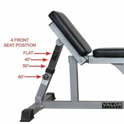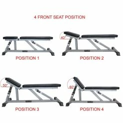 The DD-3, Utility Bench adjusts from a flat position of 0 degrees to an incline position of 70 degrees with 4 variations in between, while the seat pad adjusts in 4 different positions from 0 to 60 degrees.