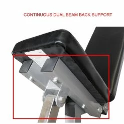 - HEAVY DUTY GYM BENCH: Constructed of 2” x 2”, 12-gauge steel frame for strength and durability. 4 base pads encased in rubber cap for further stability and provides floor protection. Continuous deal beam back support on back and seat pad for stability.