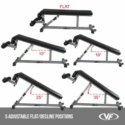 - ADJUSTABLE: The DF-2 Bench adjusts in 5 different positions to fit your exercise needs. Includes a flat position that measures 18.5” from the top of the pad off the ground.