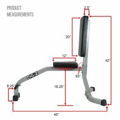 With a steel frame measuring 2.75” x 2”, the DG-2 has a tripod base and features a U-shaped base at the rear for stability. For further stability, this upright bench also has rubber end caps to encase each foot which also serves to prevent scratching and other damage to your gym floor.