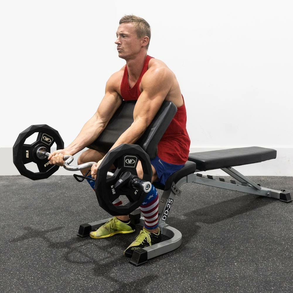 - HEAVY DUTY: This preacher curl attachment is constructed of 1.75” x 1.75” solid steel tubing. The shape and strong material of this attachment creates a huge amount of stability and support while performing curls.
