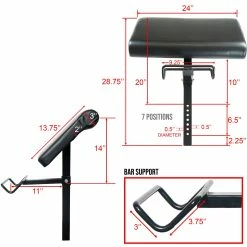 - CONTOURED PAD: No one wants to perform curls on an uncomfortable surface. This pad ensures targeted biceps for strength and comfortable triceps while performing the movement. High density, dual layered, vinyl padding is made with 3” thick padding on the top to contour to body for optimal comfort. Total pad measurement is 13.75” x 24”.