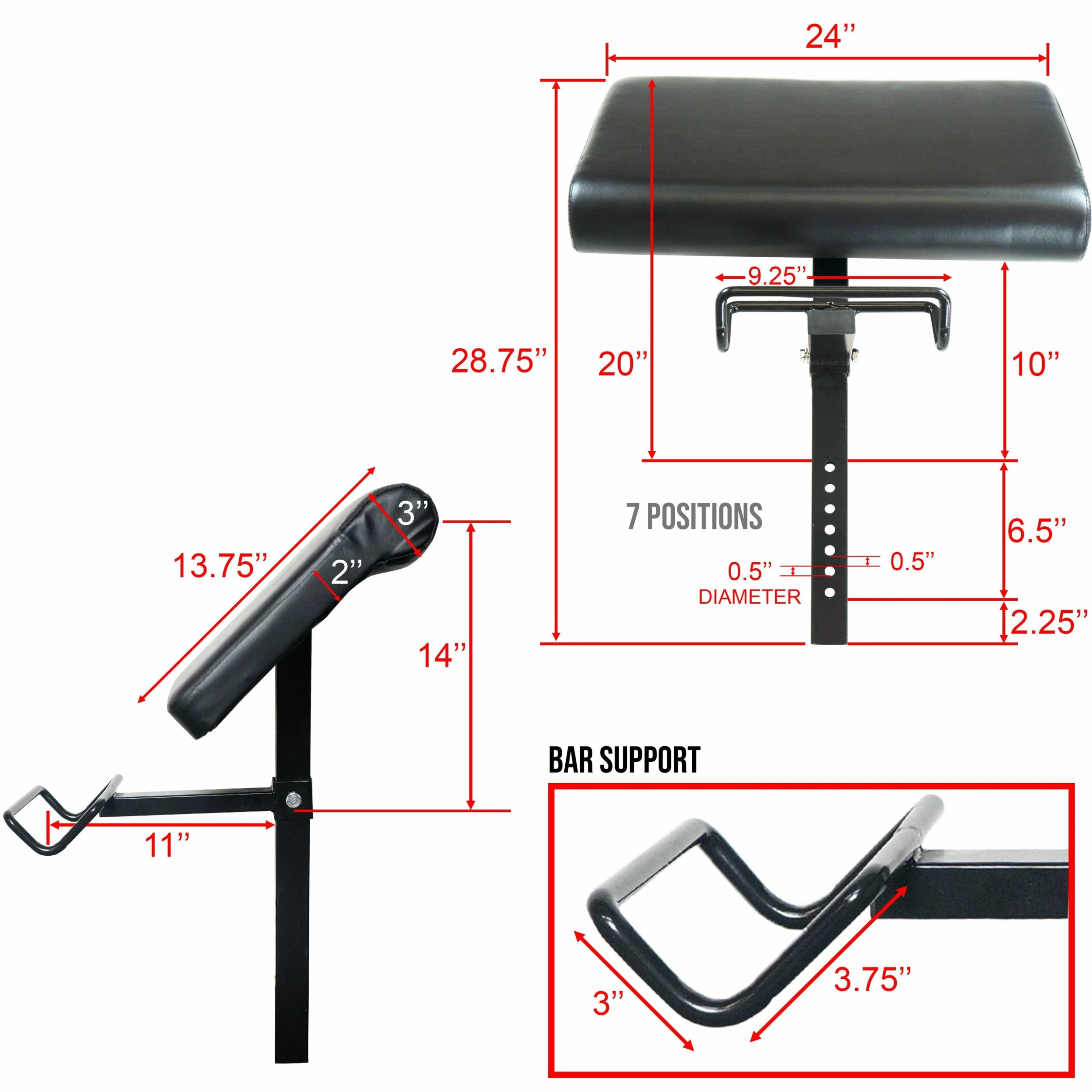 - BAR HOLDER: This attachment is everything you need to perform your bicep curls. It also includes a sturdy 9.25” wide steel bar holder can hold up to 150 lb. Positioned just below the pad for easy access when lifting.