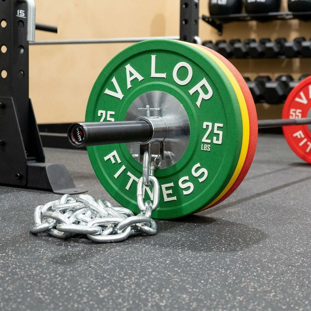 Add some heavy-duty steel chains to put your gym amongst the elite! These weightlifting chains increase time under tension and intensity! The Valor Fitness LC-53 Steel Weightlifting Chains are an ideal addition to any light-commercial, box gym, or sports performance facility geared towards powerlifting or strength training.
