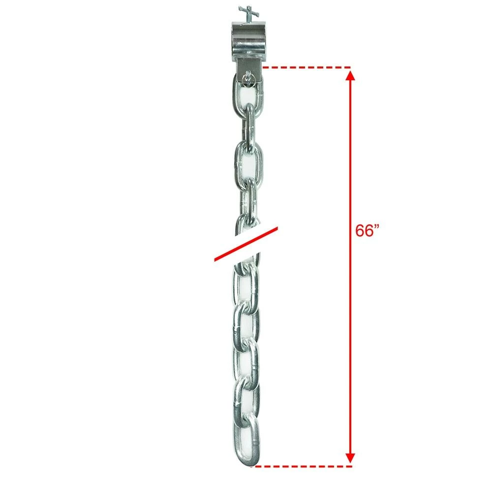- HEAVY DUTY CHAINS: Includes a pair of 69″ long solid steel chains. Each durable chain link will withstand punishment and constant contact with your gym floor during squats, deadlifts, and a bench press workout!