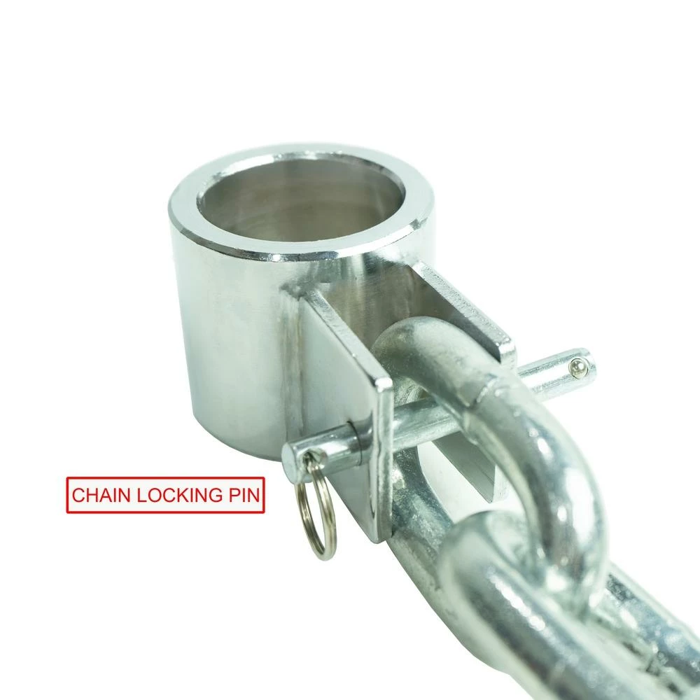- CHAIN LOCKING PINS: Solid steel chain pin runs through bottom of collar and easily removed to add weight lifting chains or remove chains to use as individual collar.