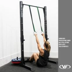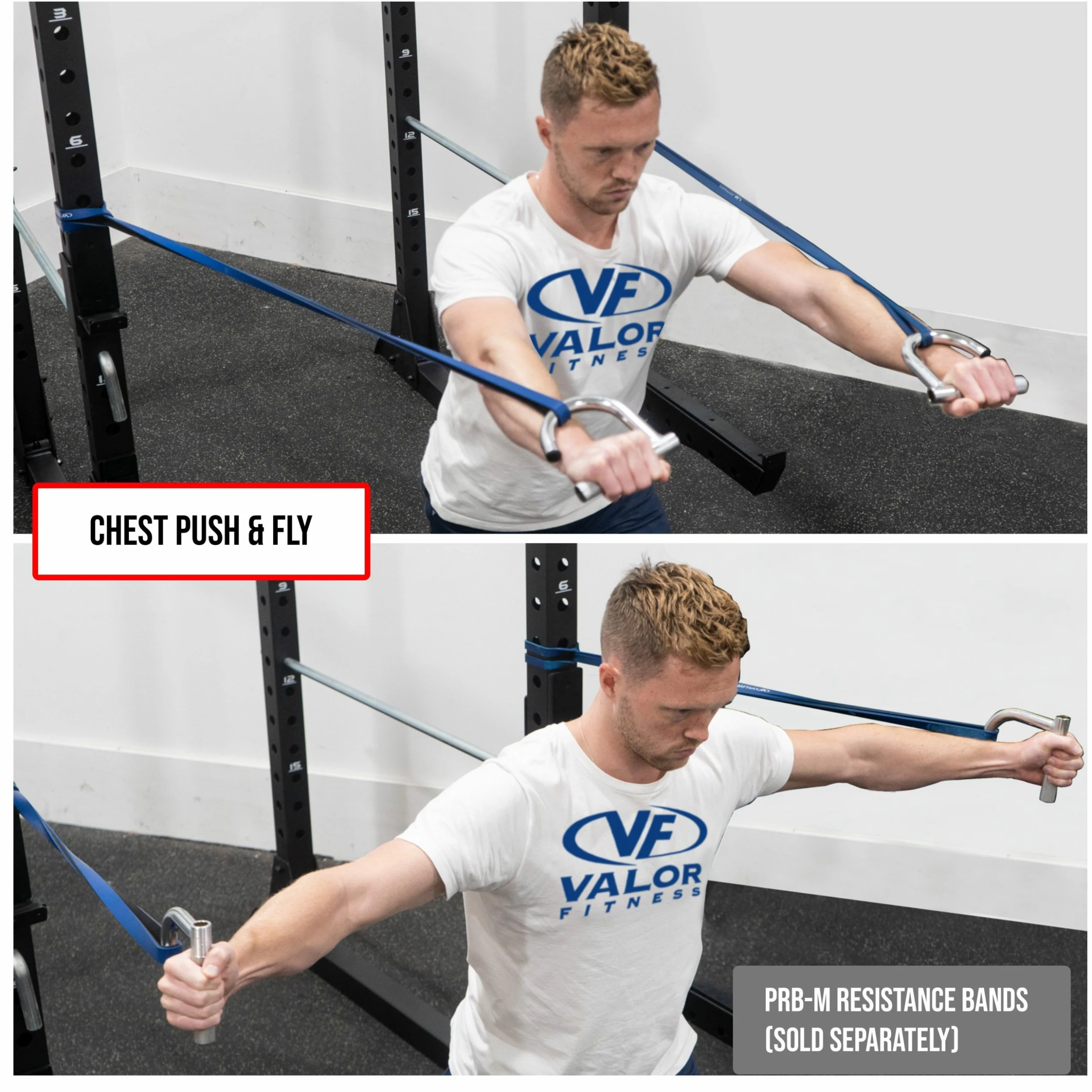 The MB-7 can be used with a variety of resistance bands to customize your workouts with unique strength and conditioning exercises by simply attaching the resistance band to a power rack or any stable upright and hooking the handle over the band.