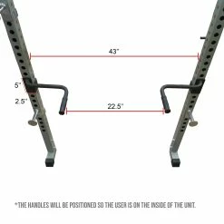 - HEAVY DUTY: Made from 12-Gauge Steel, the MB-B can safely hold up to 300 lbs. Extends 13″ from the power rack, and 9.5″ inward. Giving the user 22.5″ of room between each handle to exercise. Molded handle secures grip during use.