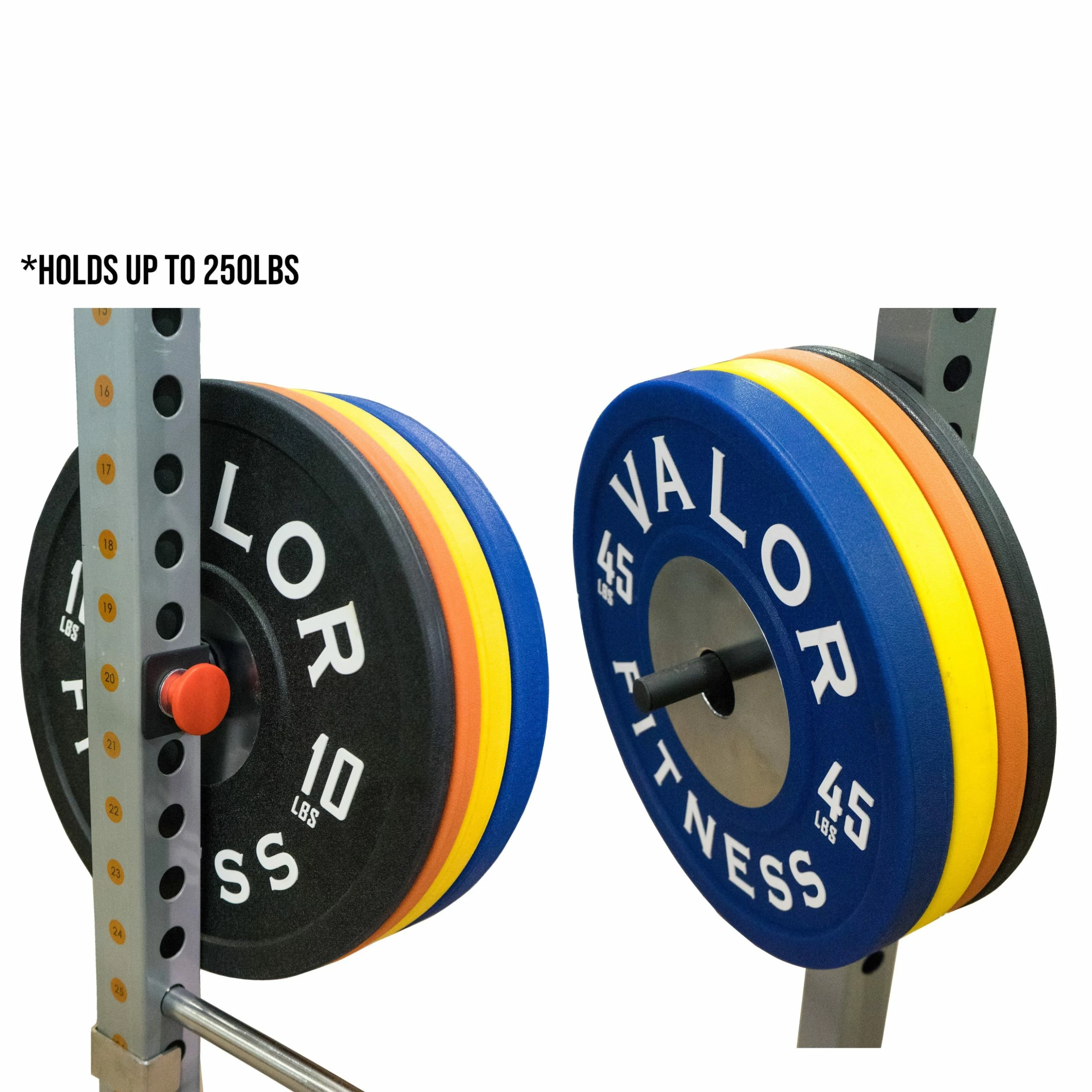 - EASY ORGANIZATION: Simply attach weight plates directly to Valor Fitness BD-7 and BD-33 Power Racks for safe, easy and convenient weight storage. Quickly grab the weight plates that you need without taking time away from your workout.