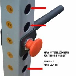 - HEAVY DUTY: Constructed of 12-gauge Solid Steel for strength and durability. Steel locking mechanism and face plate ensures a strong and stable connection that can hold up to 200 lb. Designed for 2″ x 2″ power rack frames.