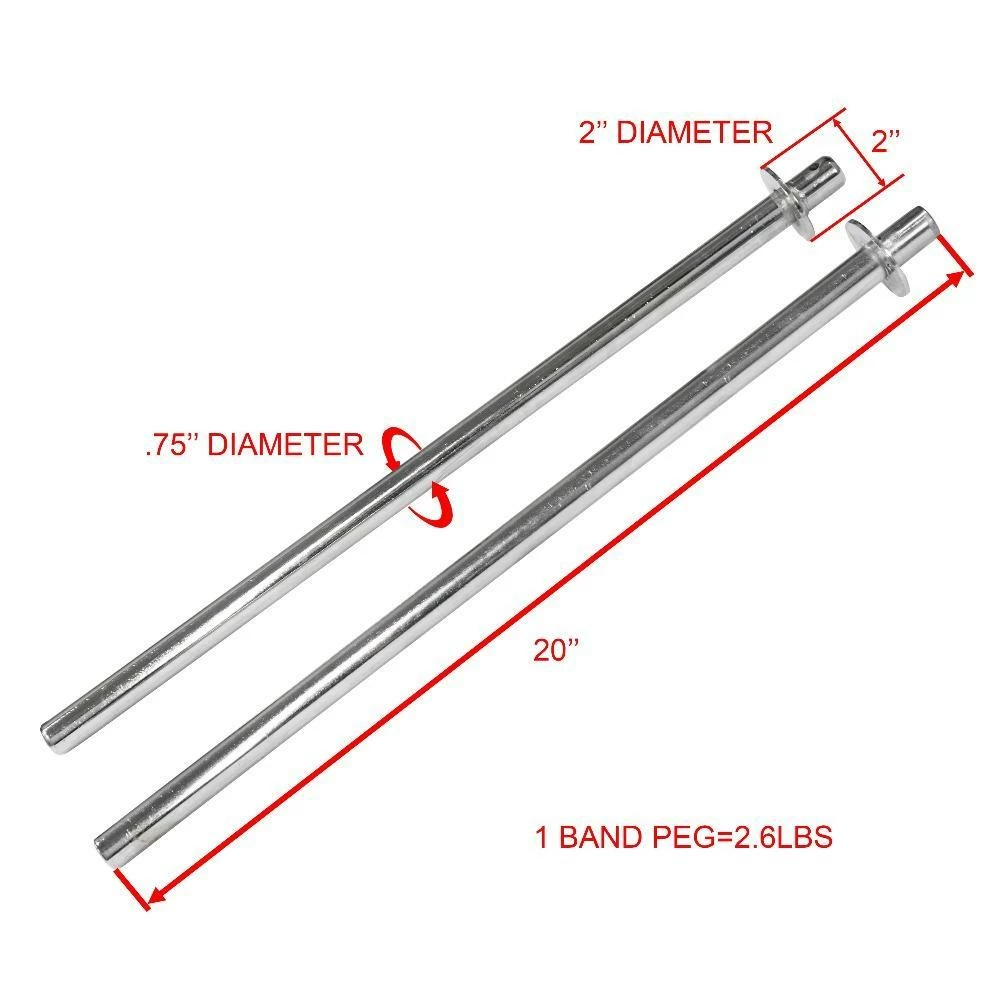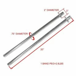 Made of solid heavy-duty chrome plated steel, they are 20” long and weigh 2.6 lb per peg. The MB-L provides a secure post for all style resistance bands. They are easily adjustable to all holes on your Valor Fitness BD-33, BD-41, or BD-58 rack safety arms as well as the RG-19 Rig Safety Spotter Arms. Note: the MB-L is meant for use with the aforementioned Valor Fitness racks ONLY. With a 3/4” post diameter and a 2” diameter of the welded washer stop, these band pegs provide a versatile fit for many rig formations. We recommend only using band pegs/resistance bands with equipment that is weighted down, bolted, or otherwise secured to the floor.