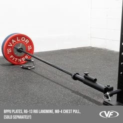 The Valor Fitness OB-86-750B Men’s Olympic Barbell was built and designed with durability and performance in mind. Measuring 86.25” in total length, the OB-86-750B weighs 20 kg (44 lb) and includes 2 ball bearings on each sleeve to ensure smooth, stable rotations during intense lifts while providing great whip action to enhance each lift.