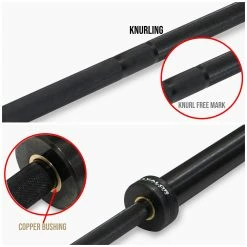 - KNURLED: Medium knurl with dual knurl-free guide marks to ensure a strong, firm grip on the bar during heavy lifts. No center knurl. Holds weightlifting chalk well for enhanced grip, while the zinc coating of the bar also enhances grip.