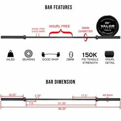 - ADDITIONAL: 28mm diameter, measuring 86.25″ in total length. Max weight load of 750 lb. Ideal for cross training Metcon’s, WODs, as well as deadlift, bench press, squat, and Olympic weightlifting and powerlifting workouts!