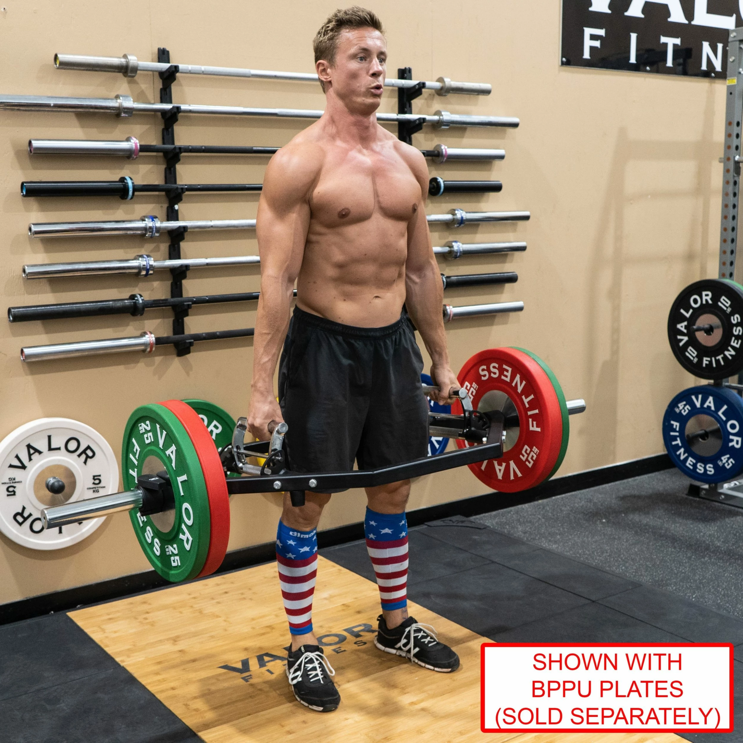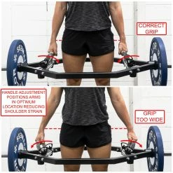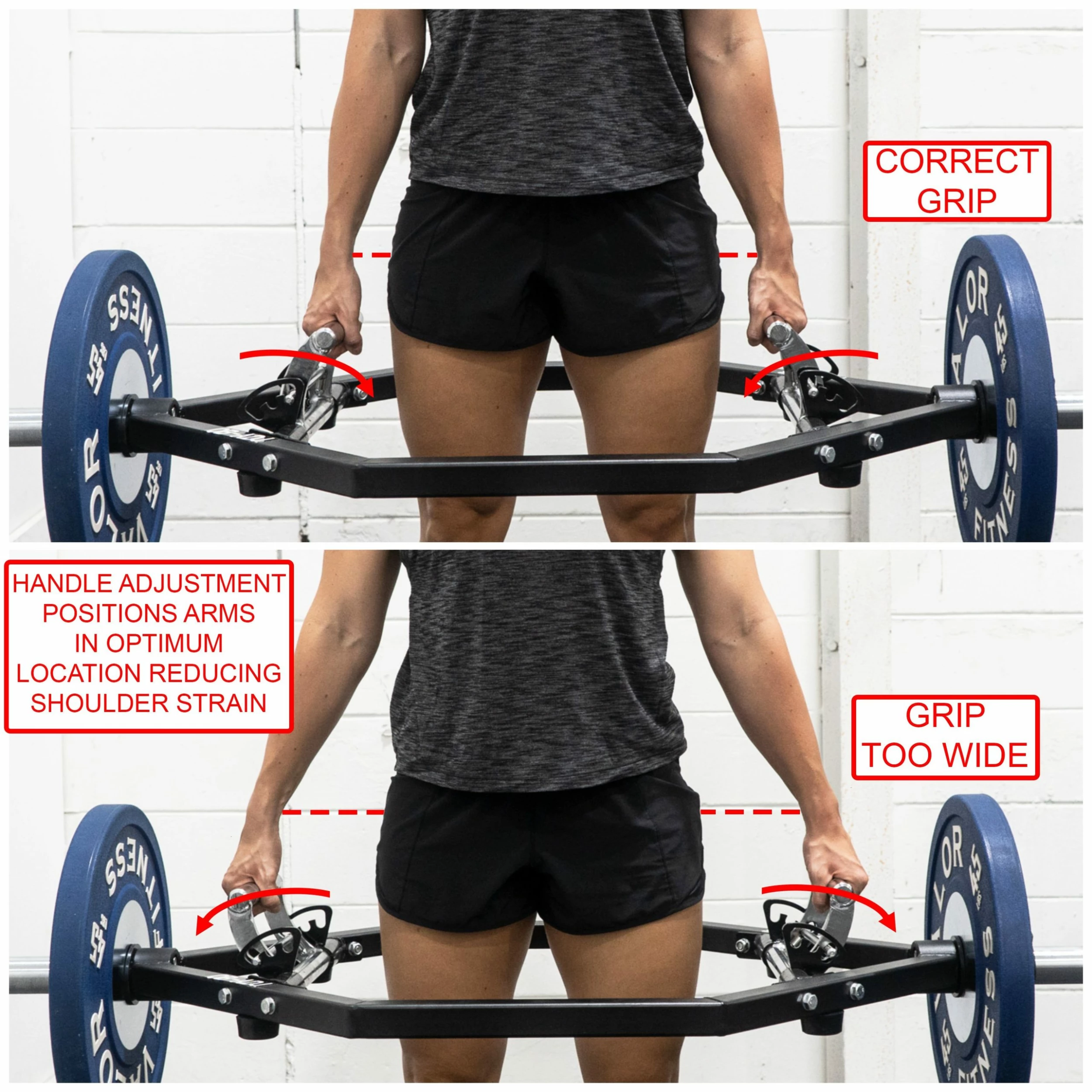 The Valor Fitness OB-ADJ Adjustable Trap Bar has an exclusive, patented design to help users develop muscular shoulders, back, and legs by ensuring correct lifting form and allowing a midline center of gravity to stay balanced, reducing strain on spine to safely lift heavy weight. The OB-ADJ is the perfect piece of equipment to add variety to any workout regimen and serve as an alternative to traditional shrugs, squats, and deadlifts. Grip width adjusts between 20β, 24.5β, and 28.75β to fit users of different sizes and needs.