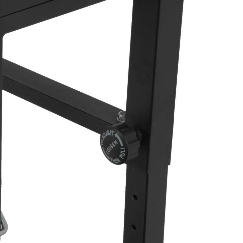 - SECURE LOCKING MECHANISM: 2 popper-pins to adjust to preferred height. 2 steel rod safety pins on opposite legs of popper-pins lock each leg in place and ensure it will not move during use.