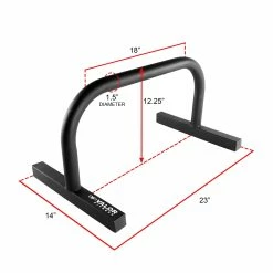 - LIGHTWEIGHT AND PORTABLE: Bring these space-sufficient handles to the gym or use them in the comfort of your own home gym! Each of these parallette bars (2) measures 23″ x 14″ x 12.25″ (bottom of the bars measures 10.75″ off the ground), with a combined weight of 14 lb.