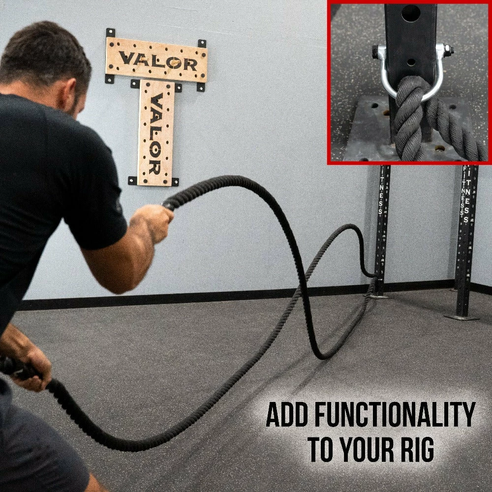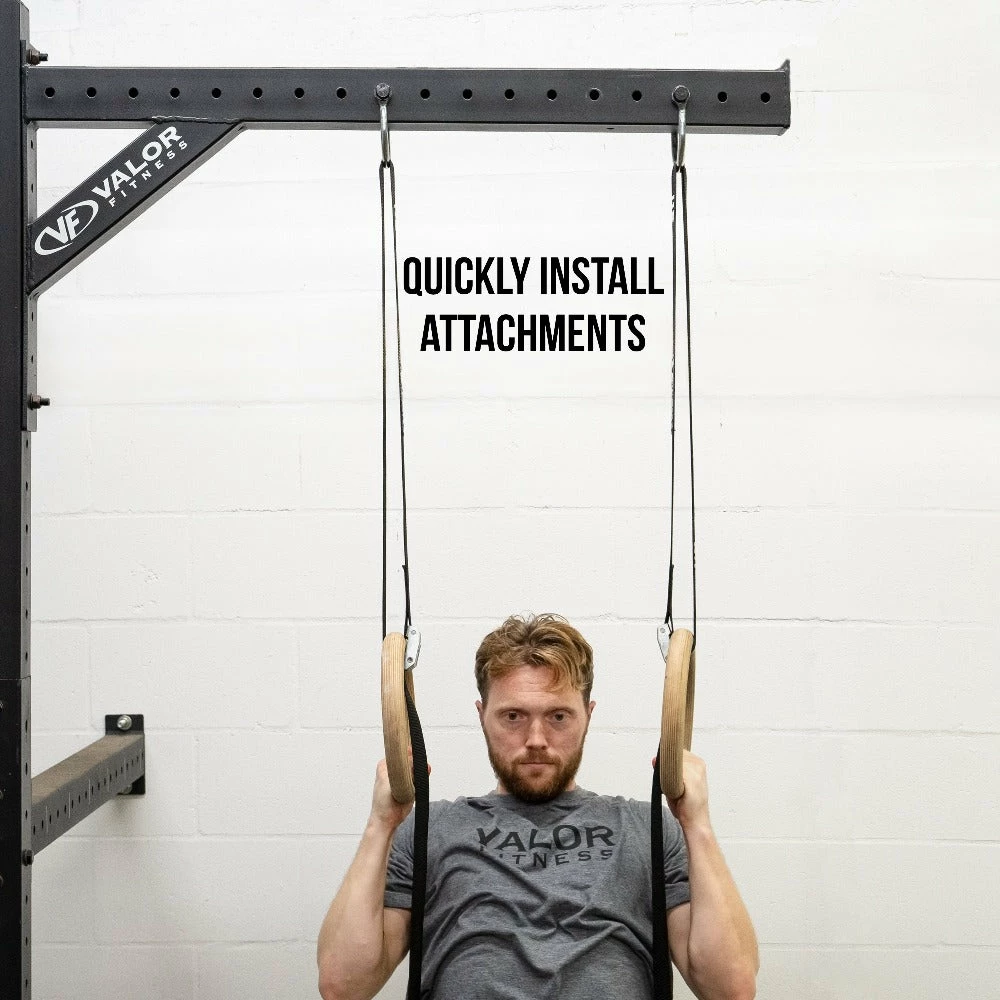 - COMPATIBLE WITH: Made for use with Valor Fitness RIGs. Adds functionality to RIG by attaching to the underside of crossbeams. Snug fit around the beam and kept in place with hardware, while the attachment is clipped on through the opening at the bottom of shackle.