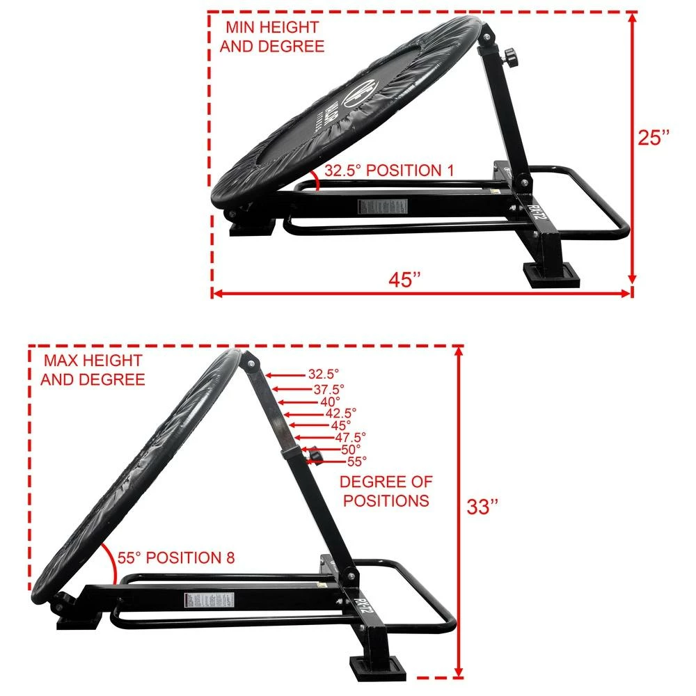 - ADJUSTABLE ANGLES– The RX-T2 features 8 adjustment positions so you can find the perfect angle for your workout or rehabilitation! From lowest to highest setting, angles measure 32.5, 37.5, 40, 42.5, 45, 47.5, 50, and 55 degrees.