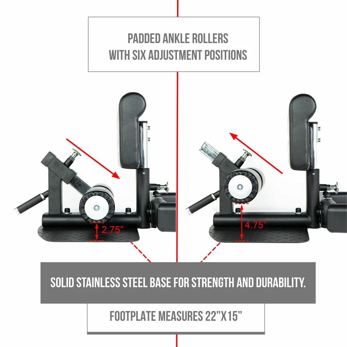 - HEAVY DUTY SQUAT MACHINE: The sissy squats machine is equipped with solid stainless steel base for strength and durability. Steel foot plate keeps user completely stable to support heavy weight and high pressure. It is also easy to store, making it the best home gym squat machine.